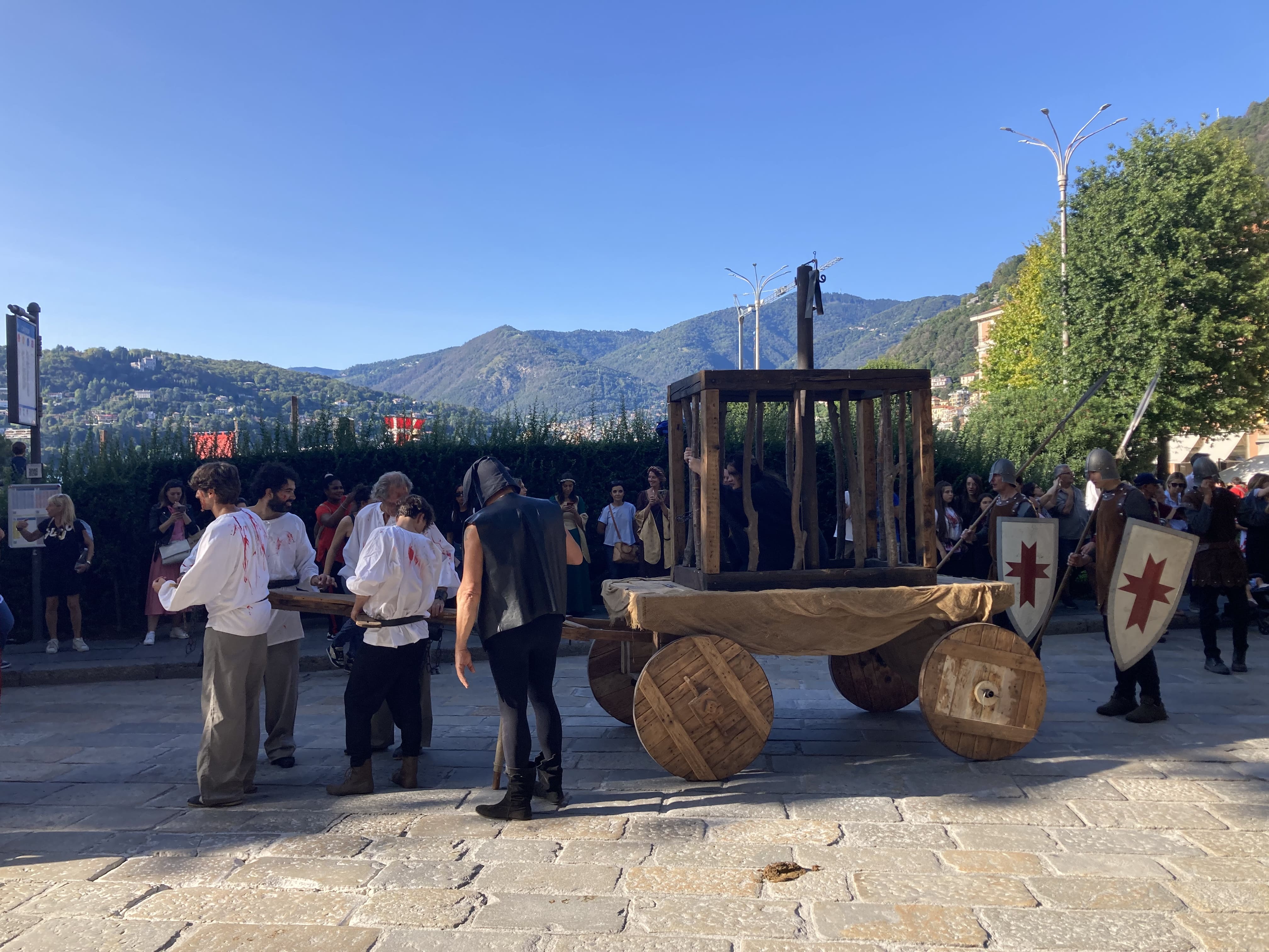 We went to Como centre to see the Great Historical Procession, a historical re-enactment organised by the Associazione Cavalieri del Palio del Baradello, to give our international students a hint about our historical heritage